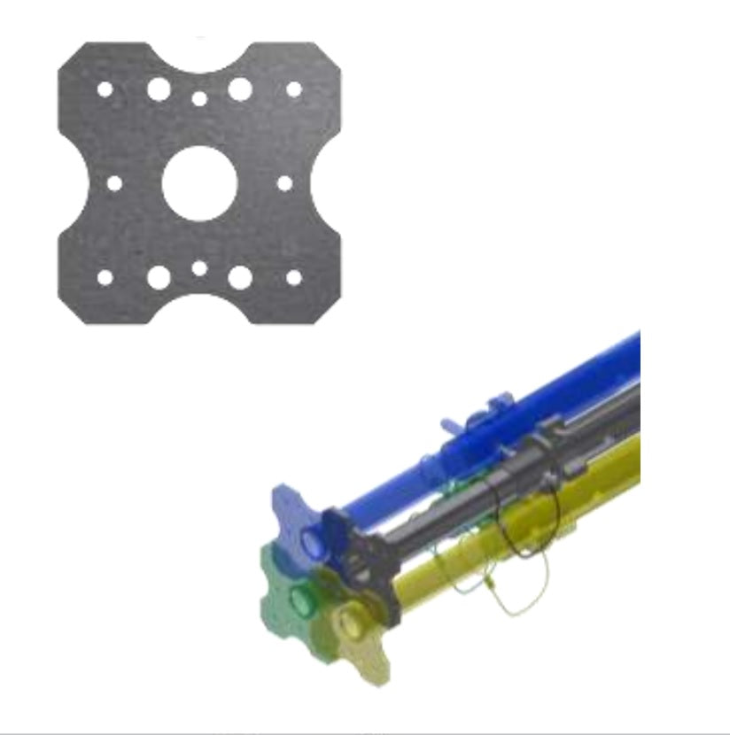 The 6" x 6" x 1/4" base and top plate have holes for connecting or aligning to u-heads, beams and other common post-shore applications.