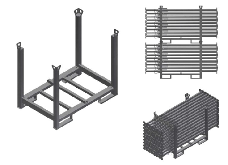 Easy transportation for shipping Post Shores by track, or lifting to the working deck for installation and stripping. Racks are designed to hold 63 Post Shores. Racks can be safely stacked 2 or 3 high providing surface is level, and hard packed.